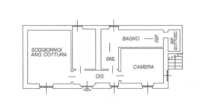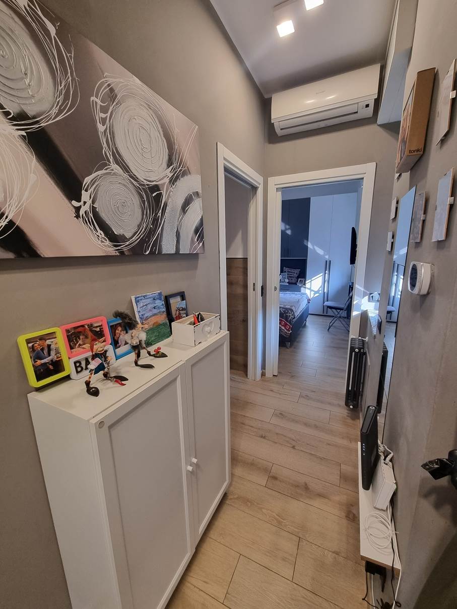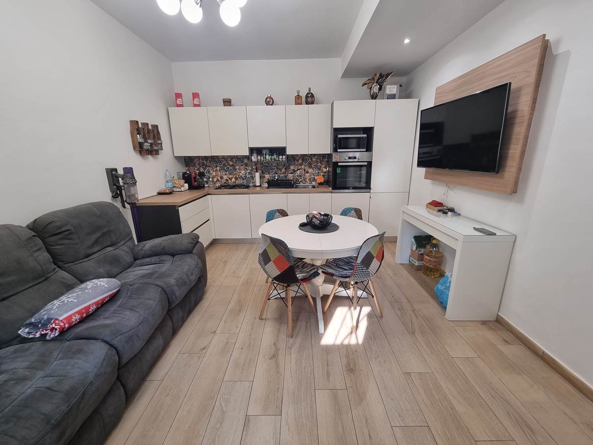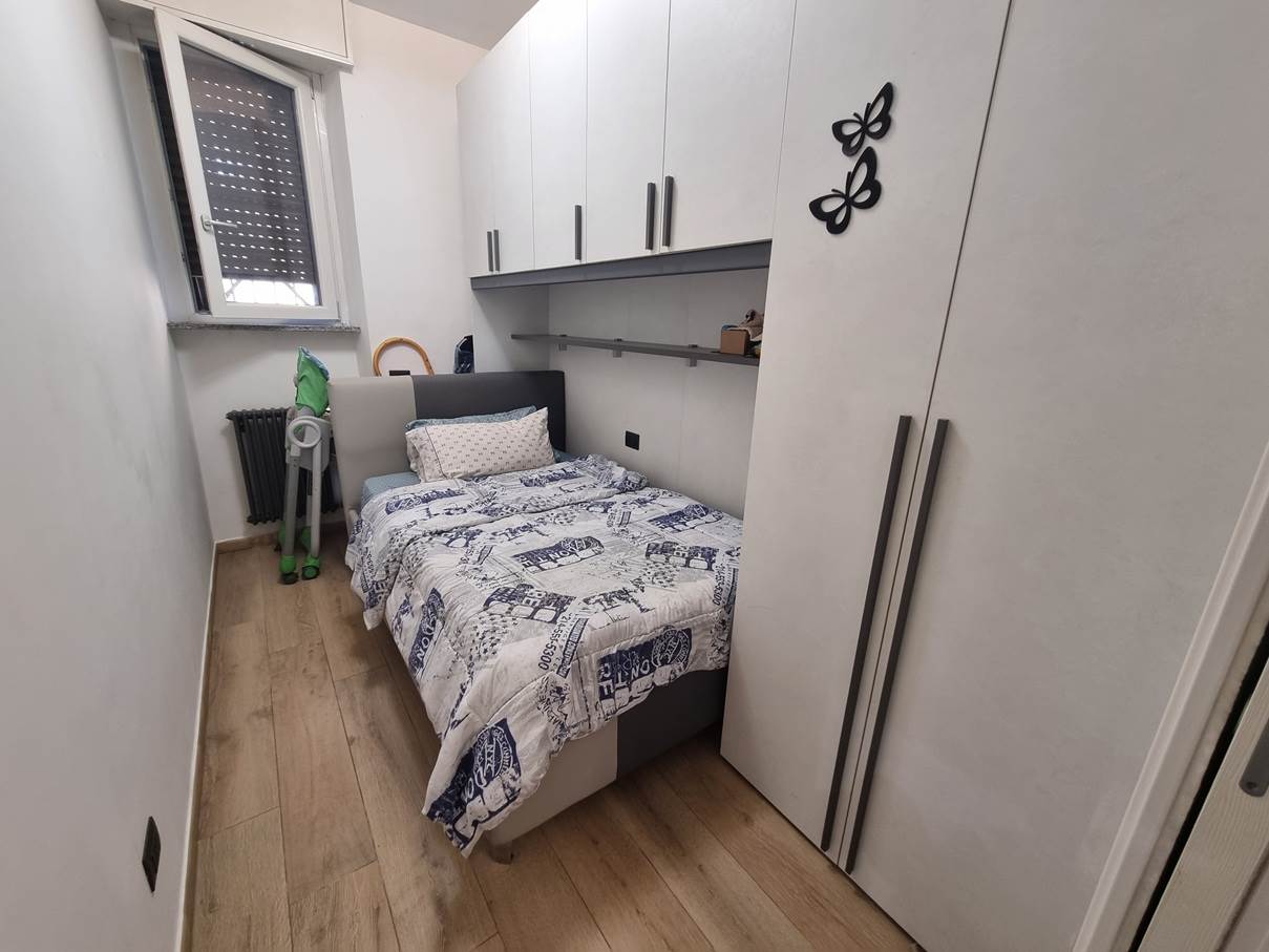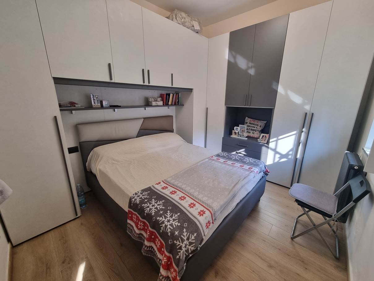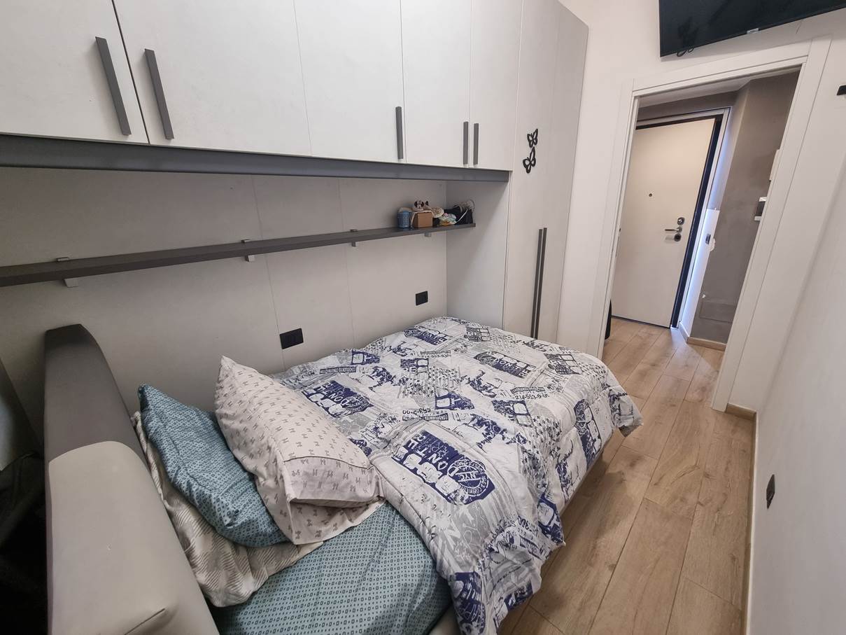 L'appartamento è così composto: ingresso, soggiorno con cucina a vista, ampia camera matrimoniale, cameretta e bagno con ripostiglio.