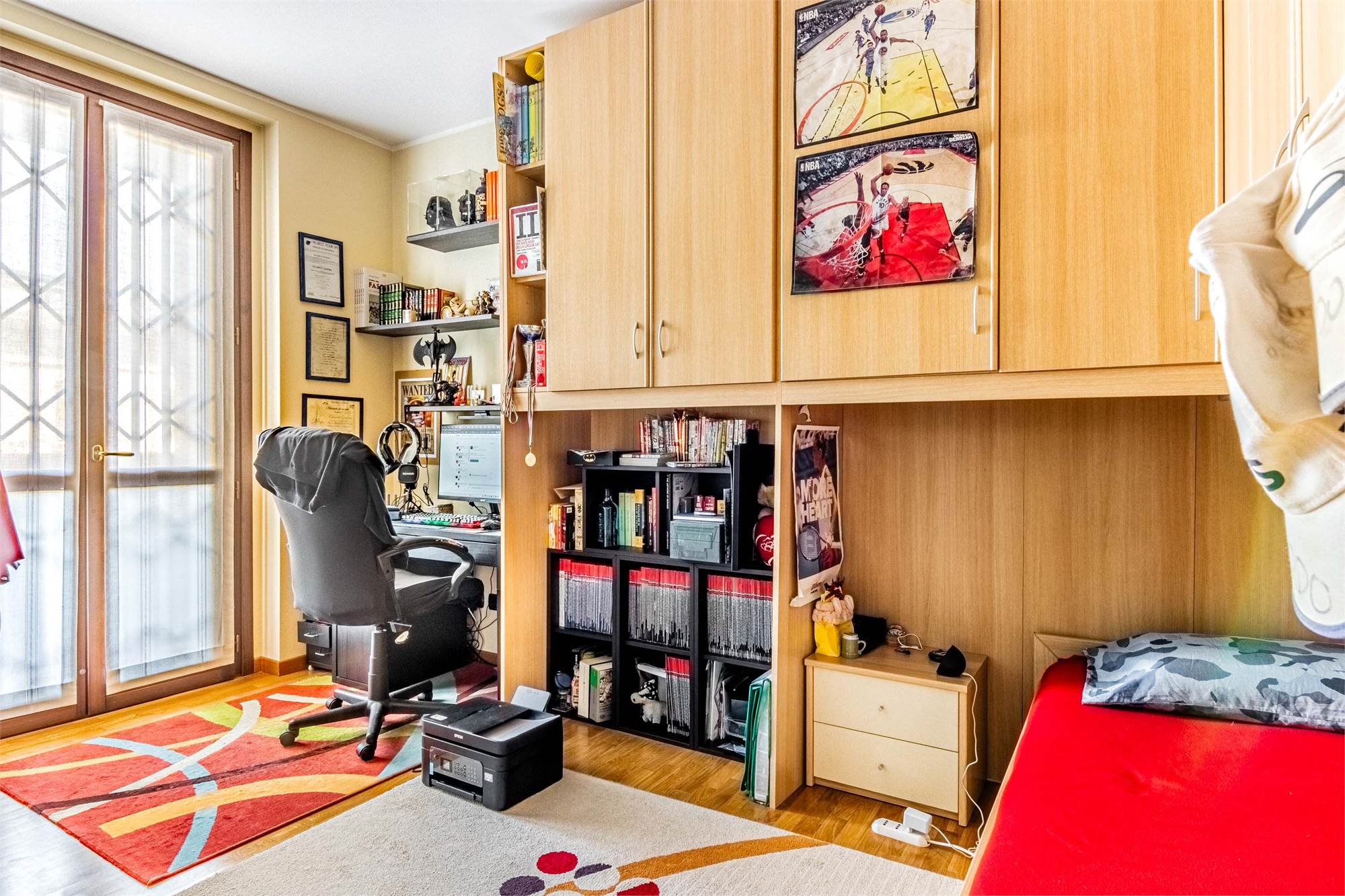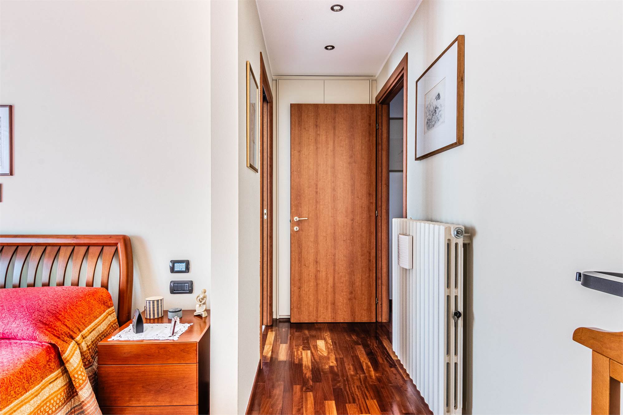La ZONA NOTTE è ben separata e comprende una CAMERA MATRIMONIALE con BAGNO PRIVATO FINESTRATO e ACCESSO DIRETTO AL BALCONE, due CAMERETTE (di cui UNA CON USCITA SUL BALCONE), uno STUDIO (eventuale QUARTA CAMERA), altri DUE BAGNI – di cui UNO ADIBITO A LAVANDERIA – e un comodo RIPOSTIGLIO.