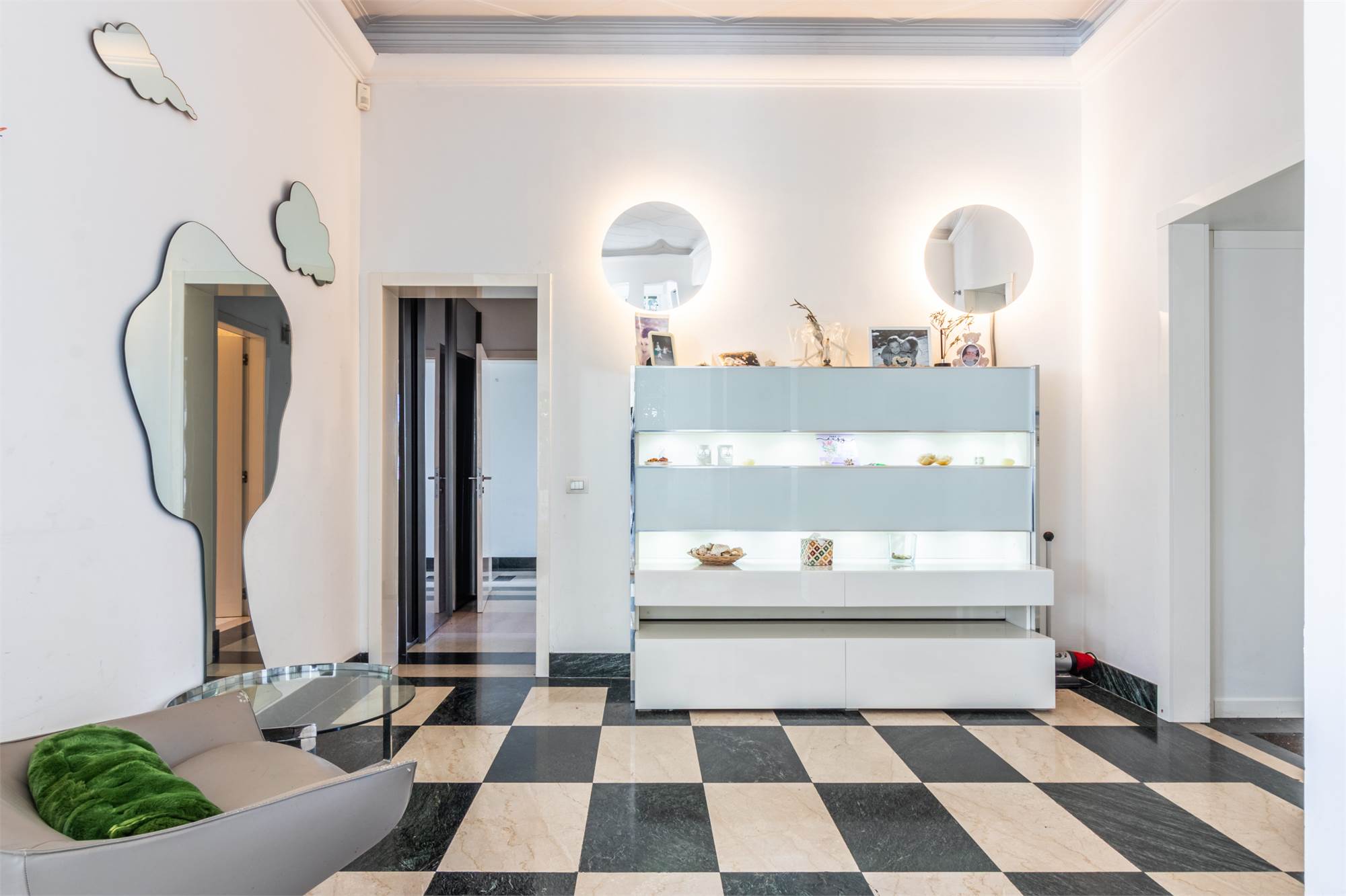 PAVIMENTI IN LEGNO MASSELLO, BAGNI impreziositi da MARMO DI CARRARA, arredi su misura e dettagli ricercati che donano agli ambienti un’ATMOSFERA CALDA E ACCOGLIENTE, ELEGANTE e SOFISTICATA.