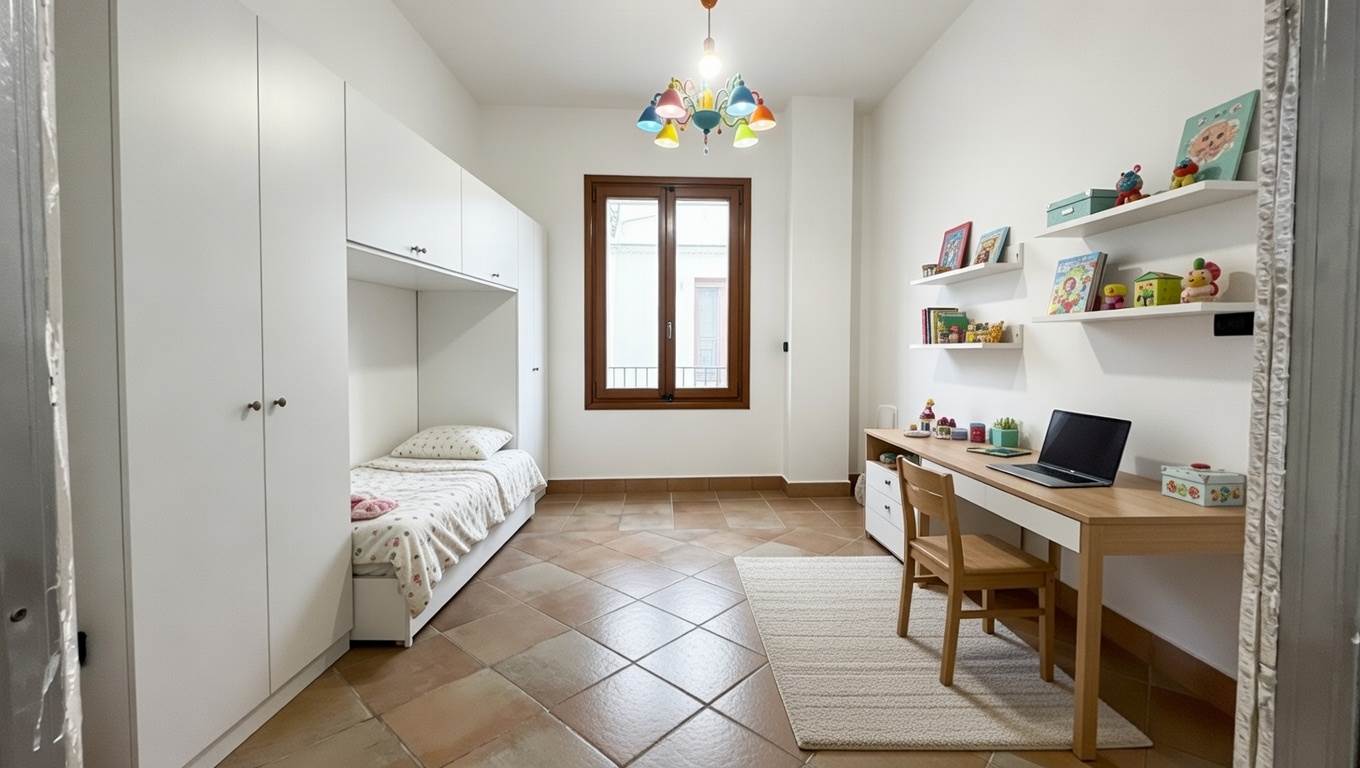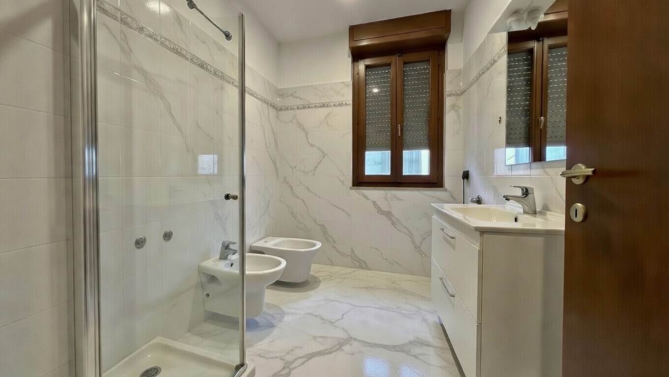 L’abitazione è composta da soggiorno con cucina a vista, tre camere da letto e due bagni, con spazi ben distribuiti e funzionali per la vita quotidiana.